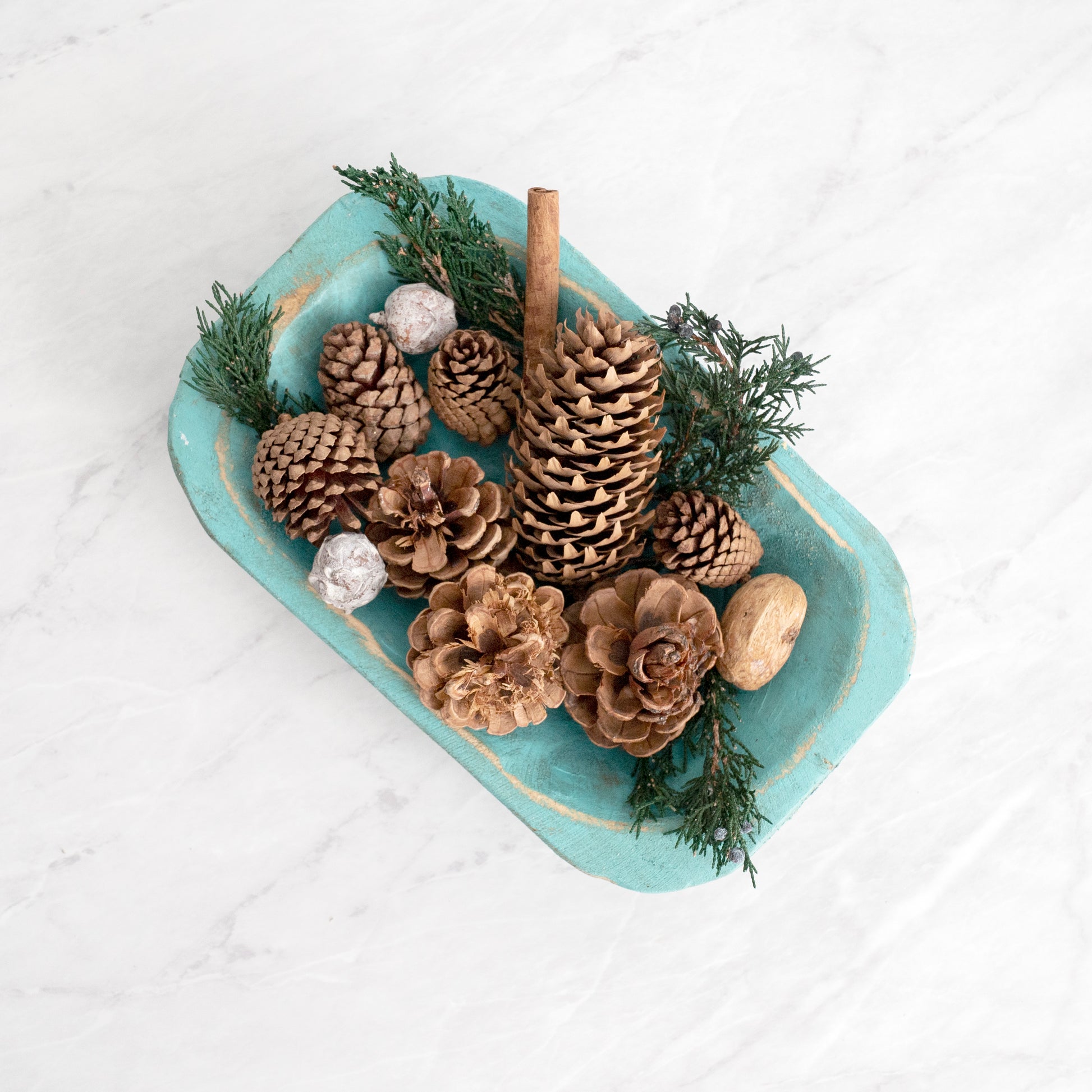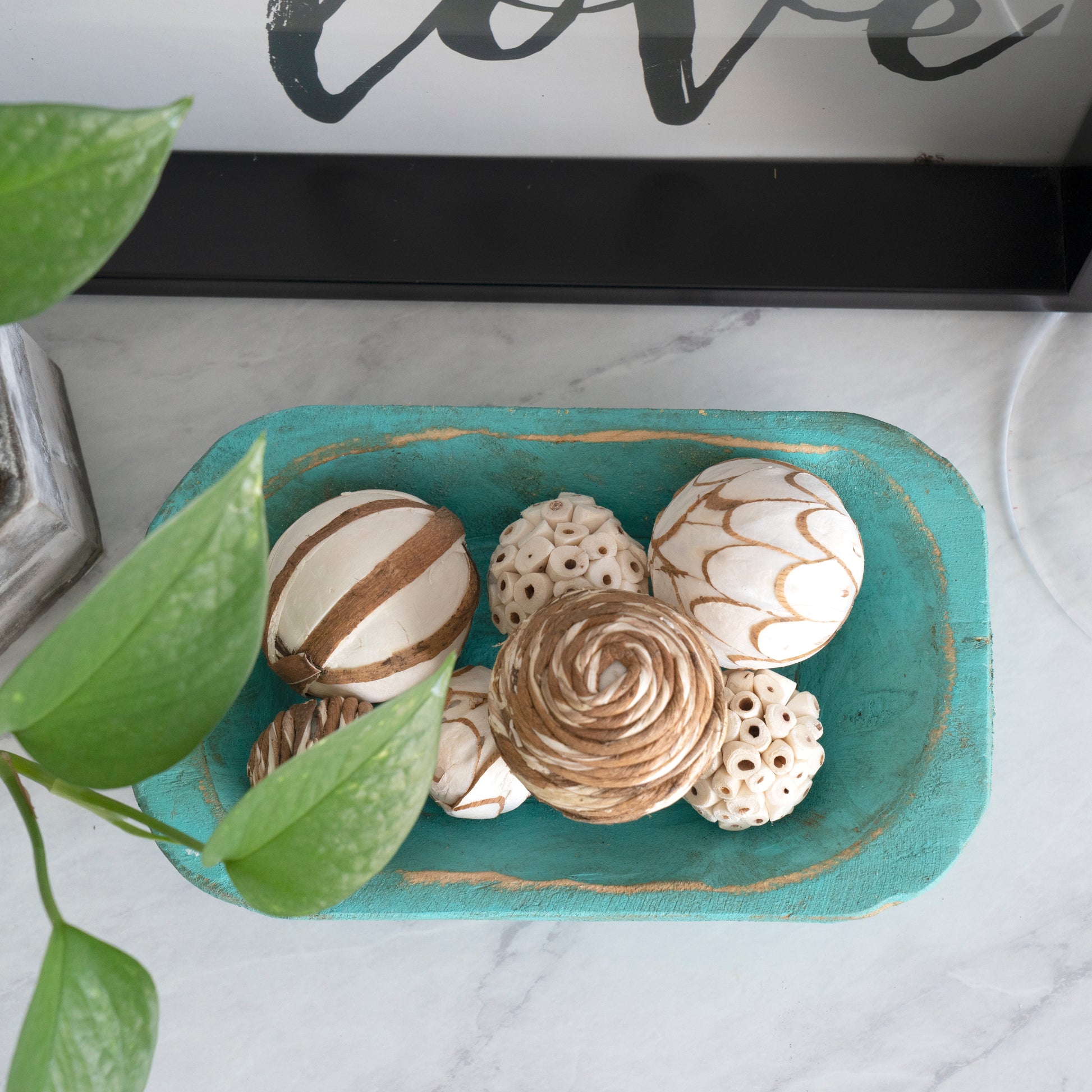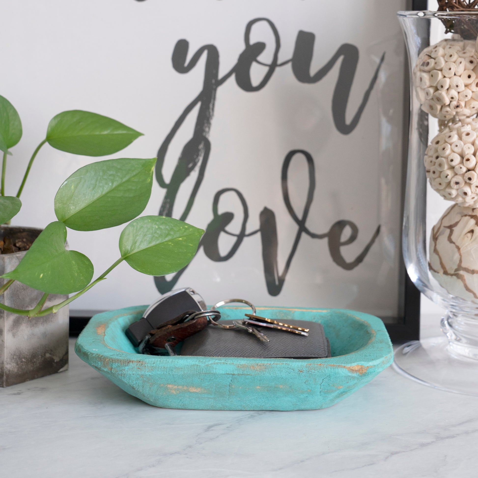 Hand-Carved Mini Rustic Dough Bowl - Teal