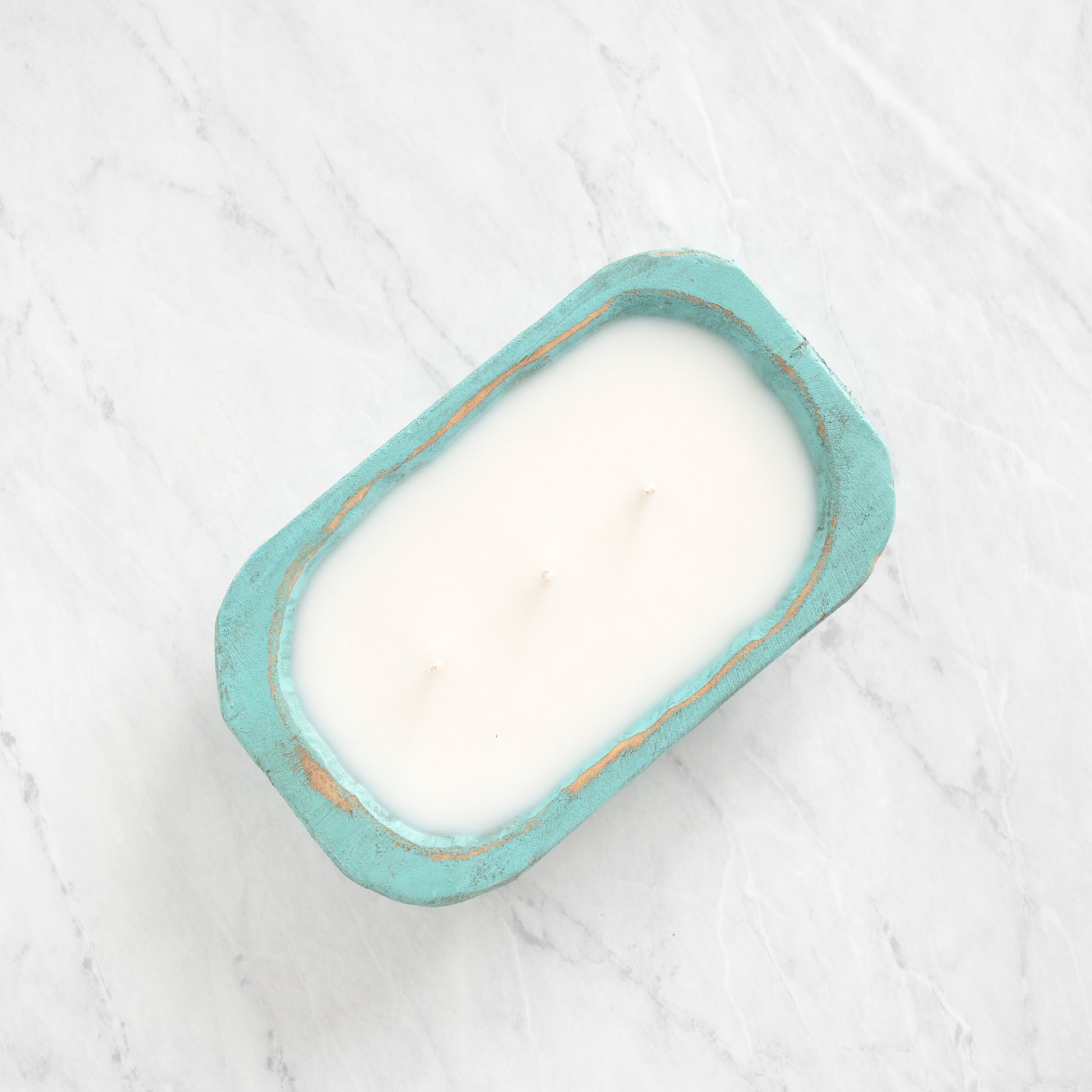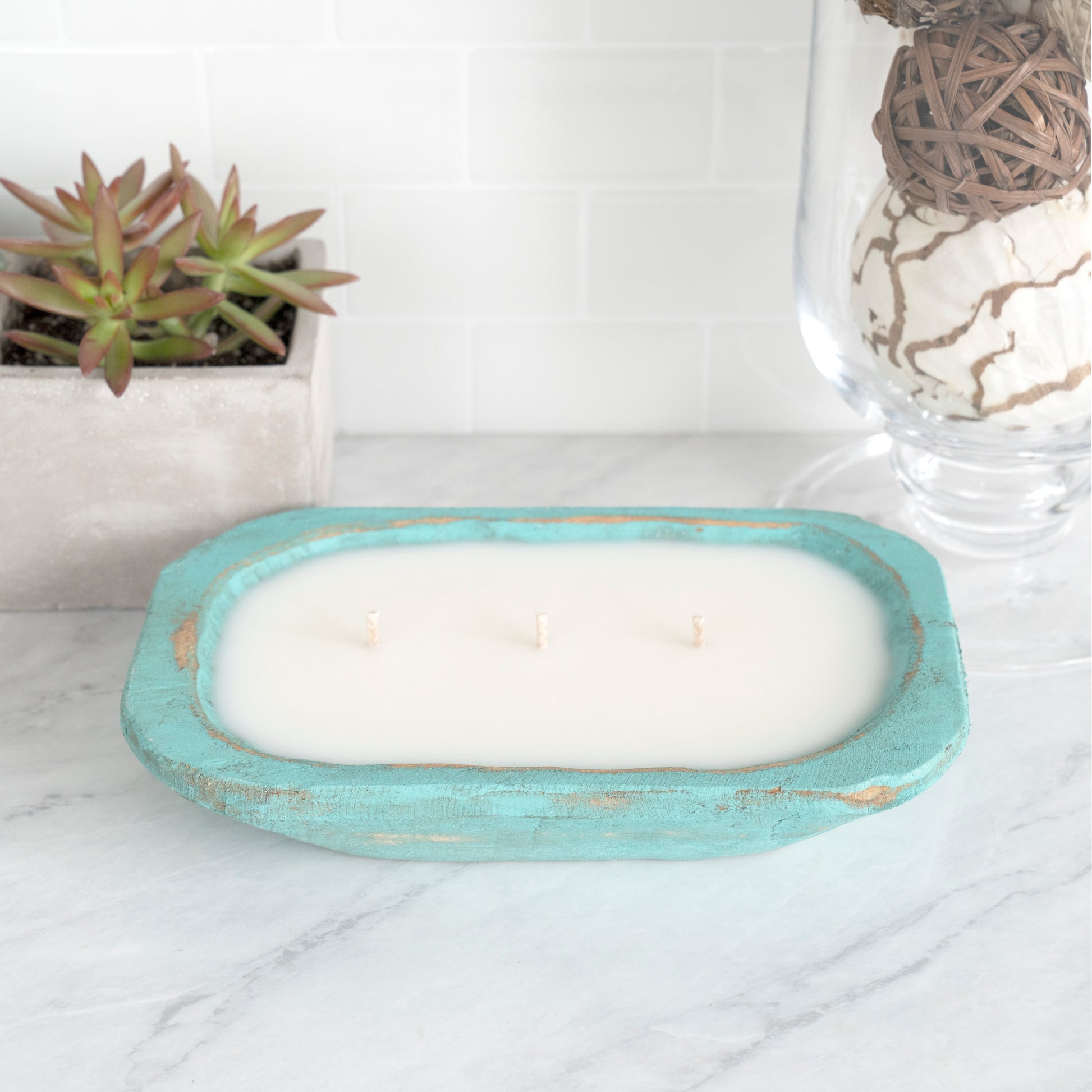 This beautiful teal hand-carved wooden bowl candle (aka dough bowl candle) is the perfect statement decor piece for your home. Also makes a wonderful housewarming or Christmas gift. Each wooden bowl candle 100% soy wax and is hand poured in small batches. Since the bowl are hand carved, every bowl is unique in shape.
